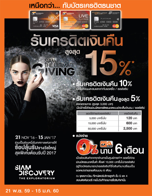 ![]() สถานที่ร่วมรายการ : Siam Discovery ระยะเวลาโปรโมชั่น : วันนี้ - 15 ม.ค. 60 | |