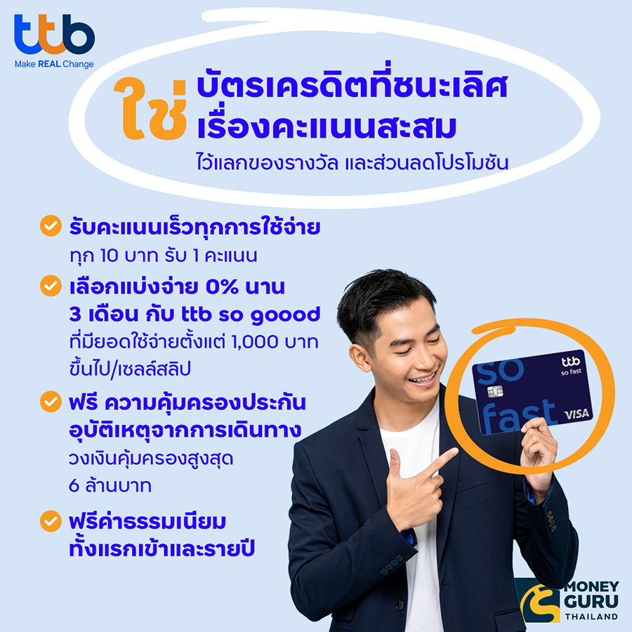 ดังนั้น บัตรเครดิต ttb so fast เป็นบัตรเครดิตสะสมคะแนนไว จึงเหมาะสำหรับคนที่ชอบเรื่องการสะสมคะแนน ชอบแลกรางวัล และยังมีสิทธิประโยชน์ที่ครอบคลุมในเรื่องอื่นๆ อีกเพียบ