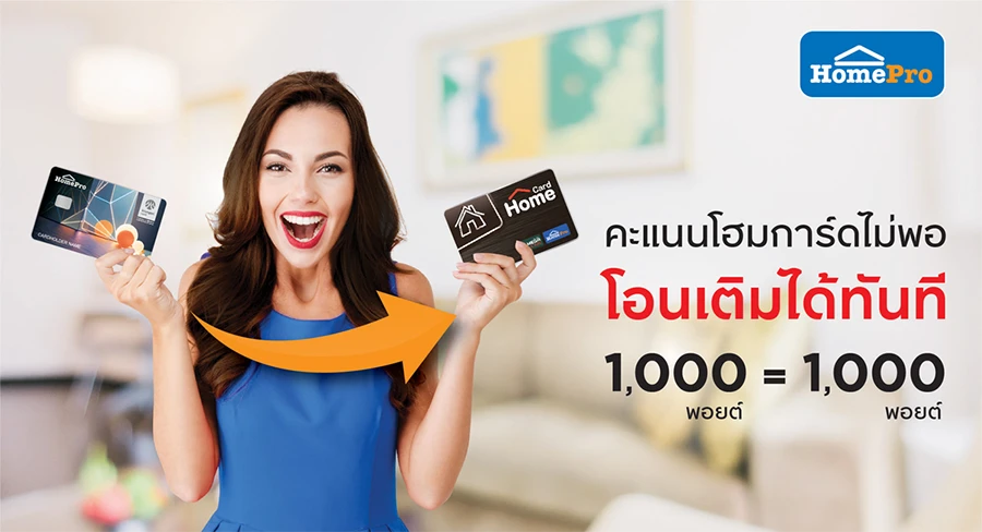 HomeCard : พอยต์ไม่พอโอนเติมได้ทันที ผ่านแอปพลิเคชั่น UCHOOSE หรือติดต่อที่เคาน์เตอร์บริการลูกค้าที่โฮมโปร ทุกสาขา (วันนี้ - 31 ม.ค. 67)
