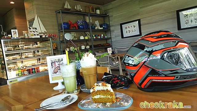 ขนมเค้กและเครื่องดื่มเย็นๆ ดับกระหายหลังขี่รถมาเหนื่อยๆ ได้ดีจริงๆ