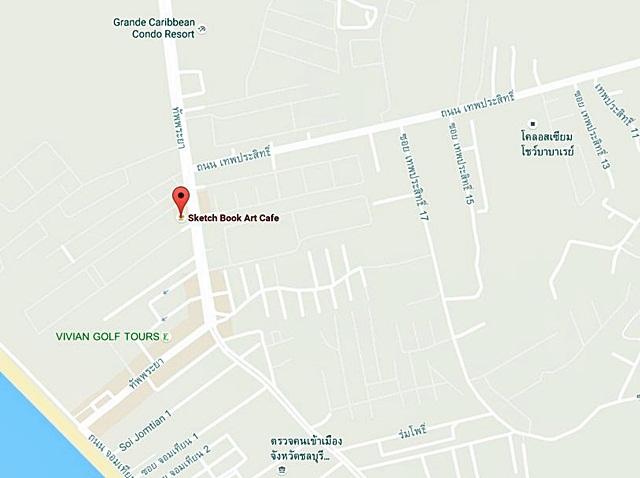 Sketch Book Art Cafe ชื่อนี้ พอค้นหาในอากู๋ว่า "ร้านอาหารในพัทยา" ก็ขึ้นมาเลยทันที เลยไม่อยากพลาดที่จะแวะเข้าไป แต่ถ้าหากว่าไม่คุ้นเคยในย่านถนนทัพพระยาก่อนถึงทางเลี้ยวซ้ายเข้าถนนหาดจอมเทียนสายหนึ่งก็อาจจะหายากสักหน่อย เพราะภายนอกร้านตกแต่งไปด้วยต้นไม้เล็กใหญ่ และศาลา หรือรั้วในสไตล์ไม้เก่าๆ เต็มไปหมด ส่วนตัวร้านนั้นตั้งอยู่ด้านใน ซึ่งร้านนี้อยู่ริมถนนทัพพระยาตรงปากทางเข้า Avalon Beach Resort Pattaya นั่นเอง เมื่อเข้ามาภายในร้าน ทำให้นึกย้อนกลับไปในวัยเด็กที่ชอบขีดเขียนวาดรูปการ์ตูน และยังมีหนังสือย้อนวัยสมัยเด็กๆ ให้ได้นึกถึงกัน โต๊ะนั่งทานอาหารใช้ไม้ล้วนๆ บรรยากาศอบอุ่นเหมือนบ้านตัวเอง โดยที่มีมุมอ่านหนังสือด้านในอีกห้องที่ต้องถอดรองเท้าเข้าไป นับว่ากิ๊บเก๋ไม่น้อยเลยครับ