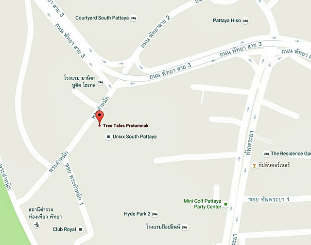 จุดสังเกตคือตึกคอนโด ซายร์ วงศ์อมาตย์ (Zire Wongamat) ก่อนถึงทางเข้า (โครงการนี้สร้างเสร็จพร้อมเข้าอยู่แล้ว)