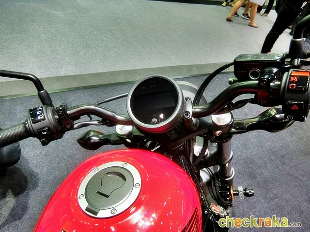 มาตรวัดทรงกลมสีดำดิจิทัลแสดงผลทั้งความเร็ว รอบเครื่องยนต์ ตำแหน่งเกียร์ว่าง ไฟเตือนสถานะการทำงานต่างๆ ของเครื่องยนต์ บนแฮนด์ขวามาพร้อมสวิตช์ดับเครื่องยนต์ ปุ่มสตาร์ตเครื่องยนต์ ทางฝั่งขวาสวิตช์สั่งงานครบครันทั้งไฟสูง-ต่ำ ไฟเลี้ยว เป็นต้น