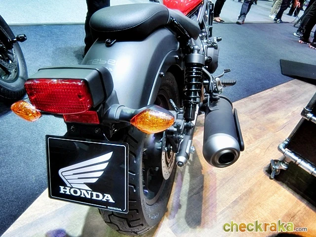 Honda Rebel รุ่น Custom Bobber Design ที่เพิ่มการตกแต่งตามแบบฉบับคุณเองมาในสไตล์คลาสสิกดุดันย้อนยุคแท้ทั้งถอดเบาะนั่งซ้อนออกเพื่อความคลาสสิกเต็มรูปแบบ เบาะนั่งขับขี่ทรงใหม่ กระจกมองข้างปลายแฮนด์ใส่ปลอกย่นหุ่มโช้กหน้า ลายถังน้ำมันคาร์บอนพันฉนวนท่อไอเสีย ยางไซส์ใหญ่แบบเรโทร เป็นต้น
