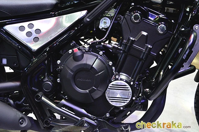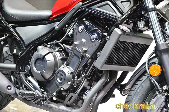 Honda Rebel ใหม่ มาพร้อมเครื่องยนต์ 2 สูบเรียง กระบอกสูบxระยะชัก 67 มม. x 66 มม. 4 จังหวะ DOHC 8 วาล์ว อัตราส่วนการอัด 10.7:1 ขนาด 471 ซีซี ระบบหัวฉีด PGM-FI ระบายความร้อนด้วยน้ำ เกียร์ 6 จังหวะ ถังน้ำมันมีความจุมากถึง 11.2 ลิตร โช้กหน้าแบบเทเลสโคปิค ด้านหลังโช้กคู่ และระบบเบรก ABS ที่ทำงานร่วมกับดิสก์เบรกหน้า-หลัง เรียกว่าผสานความคลาสสิกและร่วมสมัยพร้อมความปลอดภัยแบบจัดเต็ม