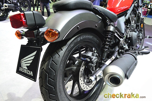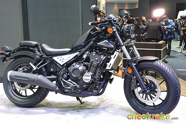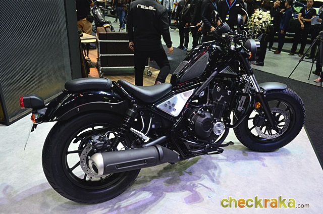 Honda Rebel - (ฮอนด้า รีเบล) รูปทรงคลาสสิก แนวคัสตอมบ็อบเบอร์ดีไซน์ยุคใหม่ โดดเด่นด้วยโคมไฟหน้าอลูมินั่มทรงกลมคิ้วสีเงิน ถังน้ำมันทรงลาดเอียง เบาะนั่งมีความสูงเพียง 690 มม. ทำให้นั่งสบาย โครงสร้างตัวถังเน้นสีดำด้านเพิ่มความคลาสสิก เบาะนั่งซ้อนแยกชิ้นที่สามารถถอดเก็บได้เมื่อต้องการขับขี่คนเดียว ไฟท้ายทรงสี่เหลี่ยมแบบคลาสสิก บังโคลนหน้าสั้น และบังโคลนหลังขึ้นรูปแบบโค้งยาวไปตามล้อ