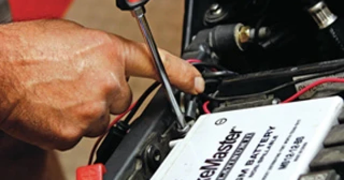 - ตรวจดูขั้วสายแบตเตอรี่่ทั้งขั้วบวกและขั้วลบว่า หลุดหลวม หรือมีขี้ตะกรันหรือไม่ ถ้ามีให้ใช้น้ำอุ่นล้าง และเอาแปลงลวดขัดให้ออก รวมทั้งตรวจสอบสายระบายไอของแบตเตอรี่ว่าอยู่ในตำแหน่งที่ถูกต้องหรือไม่ เพราะอาจจะทำให้ชิ้นส่วนที่ถูกไอระเหยของแบตเตอรี่ผุกร่อนได้