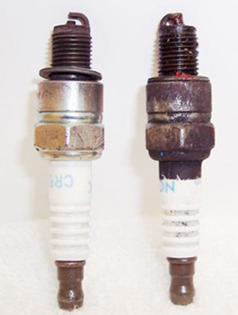 หัวเทียนสภาพปกติ (ซ้าย) และหัวเทียนสภาพไม่ปกติ (ขวา)