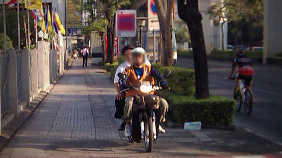ขับขี่บนฟุตบาทแบบย้อนศรเป็นภาพที่เห็นจนชินตา
