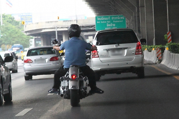 จะเห็นว่ามีกฎจราจรช่วงหนึ่งระบุว่า "รถจักรยานยนต์ในทางเดินรถซึ่งได้แบ่งช่องเดินรถในทิศทางเดียวกันไว้ ตั้งแต่สองช่องขึ้นไปหรือได้จัดช่องเดินรถประจำทางด้านซ้ายไว้โดยเฉพาะ ต้องขับรถในช่องเดินรถด้านซ้ายสุด หรือใกล้เคียงกับช่องเดินรถประจำทางแล้วแต่กรณี" โดยในปัจจุบันผู้ขับขี่รถจักรยานยนต์นั้นมักจะขับเลนขวา หรือแซงตามอำเภอใจ ซึ่งเราควรระมัดระวังและเคารพกฎจราจรนี้โดยเคร่งครัดนะครับ หากฝ่าฝืนอาจถูกจับปรับได้