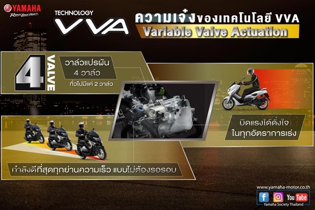 ระบบวาล์วแปรผัน (VVA) ให้กำลังและแรงบิดดีขึ้นเมื่อถึงรอบการทำงานที่ 6,000 รอบต่อนาทีขึ้นไป ทำให้มีสมรรถนะดีในช่วงความเร็วรอบต่ำ-สูง ระบบนี้มีส่วนประกอบคือ เพลาลูกเบี้ยวรอบต่ำ และเพลาลูกเบี้ยวรอบสูง ซึ่งทั้งสองเพลาลูกเบี้ยว จะช่วยควบคุมและเปิด-ปิดวาล์วไอดีให้กว้าง เพื่อช่วยรักษากำลังเครื่องยนต์ โดยสลับการทำงานจากรอบต่ำไปรอบสูงที่ 6,000 รอบ และมีคำว่า VVA ขึ้นที่หน้าจอแสดงผล LCD