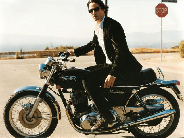 Keanu Reeves นักแสดงที่โด่งดังจากหนังเรื่อง "Speed เร็วกว่านรก" ที่ต้องขับรถบัสให้รอดพ้นจากระเบิดที่ถูกตั้งเอาไว้ และจาก "The Matrix" ที่หลายคนคงคุ้นเคยกันดี ชีวิตจริงชื่นชอบการขี่มอเตอร์ไซค์เที่ยวโดยมีรถหลายรุ่นด้วยกันอย่างเช่น 1973 Norton 850 commando หรือ Harley-Davidson Dyna Wide Glide และ West Coast Choppers Bike