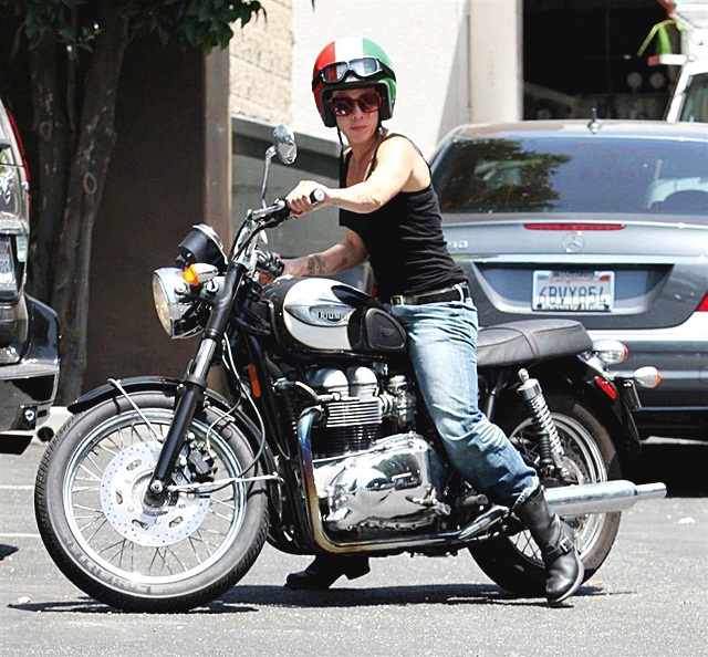 Pink นักร้องสาวชาวร็อคที่โด่งดังจากการทำผมสีชมพู เลือกใช้มอเตอร์ไซค์ตามคาแร็คเตอร์ตัวเองด้วย 2 รุ่น 2 สไตล์คือ Triumph Bonneville T100 และ Harley-Davidson Sportster XL Iron 883N