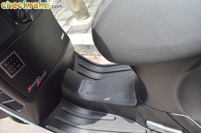 พื้นที่วางเท้าเหลือเฟือตามสไตล์เวสป้า และสะดวกกับกล่องเก็บของด้านหน้า แม้มีพื้นที่ไม่มาก