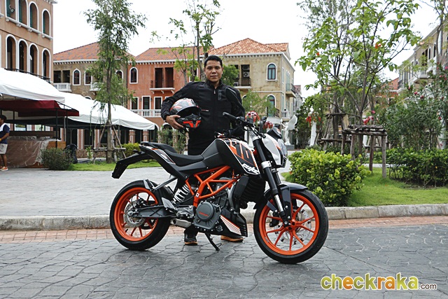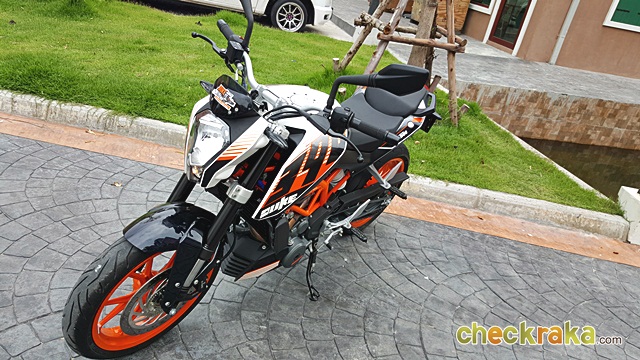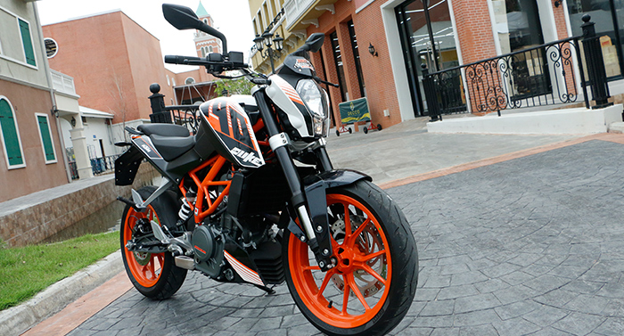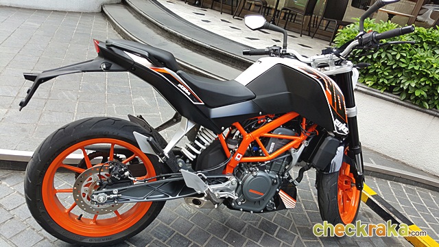 KTM DUKE 390 "บิ๊กไบค์" สไตล์ "เน็กเก็ต" ที่ถูกออกแบบเพื่อได้อารมณ์แบบเดียวกับรถแข่งตามสโลแกน Ready to Race เสียงเครื่องยนต์ที่คำรามดุดัน อัตราเร่งที่สนุกแรงสั่งได้ และให้ความประหยัดพอตัว คล่องตัวในเมือง ควบคุมง่ายและนิ่งเมื่อความเร็วสูง พร้อมความเป็นออสเตรียแท้ๆ ทั้งคันราคาเพียง 199,000 บาทเท่านั้น