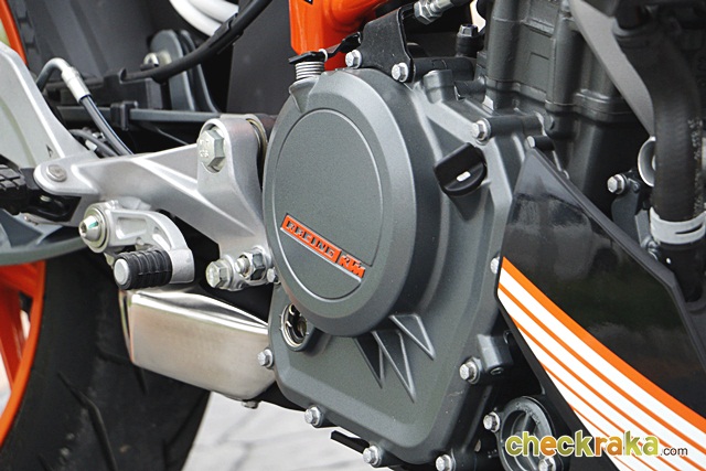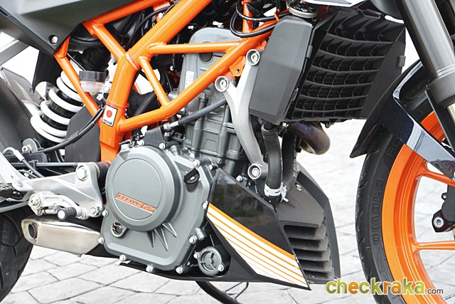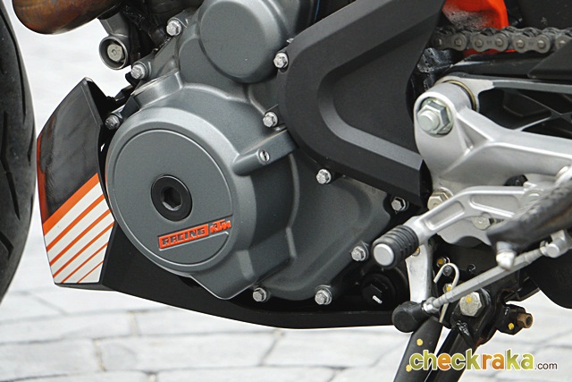 จุดเด่นที่สร้างความเร้าใจของ KTM DUKE 390 อีกอย่างคือ เครื่องยนต์แบบสูบเดี่ยวที่ให้พลังเสียงดุดัน ทุกครั้งเมื่อกระแทกคันเร่ง แม้จะเป็นท่อเดิมจากโรงงานก็มันหูได้ไม่น้อย และข้อบอกว่าถูกออกแบบให้มีสมรรถนะเพื่อขับขี่ได้ทั้งในถนนและสนามแข่ง
