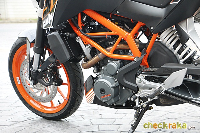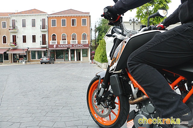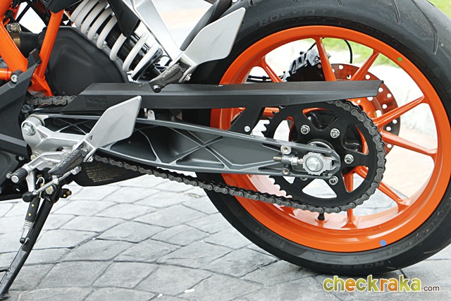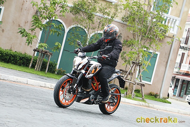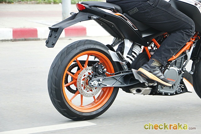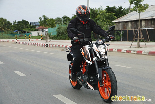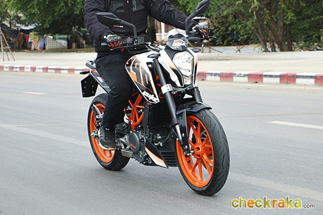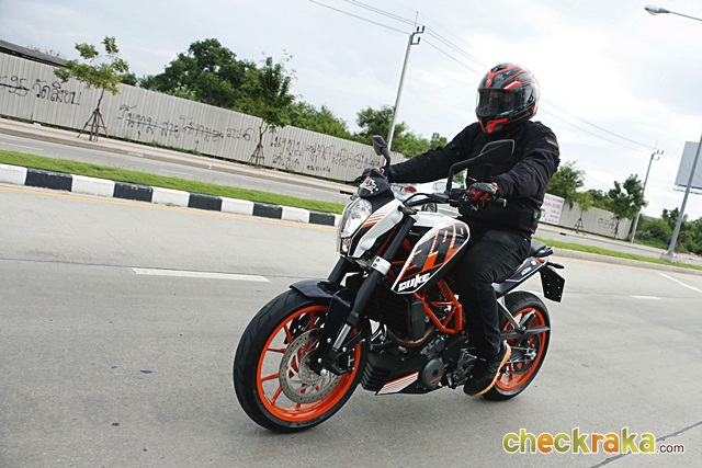 ช่วงล่างเซ็ตมาแบบด้านหน้าแข็ง ด้านหลังจะนุ่มกว่าเล็กน้อย ซึ่งช่วยให้ควบคุมรถได้ดีที่ความเร็วสูงแม้ว่ารถจะมีน้ำหนักเบาก็ตาม นับว่า KTM ออกแบบมาได้เหมาะสมมากทีเดียว ระบบเบรกให้ความมั่นใจมากๆ โดยเฉพาะ ABS ช่วยให้ปลอดภัยมากขึ้นเมื่อเจอผิวถนนที่ลื่นและไม่น่าวางใจของเมืองไทย!