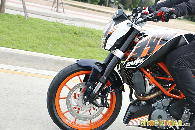 ช่วงล่างเซ็ตมาแบบด้านหน้าแข็ง ด้านหลังจะนุ่มกว่าเล็กน้อย ซึ่งช่วยให้ควบคุมรถได้ดีที่ความเร็วสูงแม้ว่ารถจะมีน้ำหนักเบาก็ตาม นับว่า KTM ออกแบบมาได้เหมาะสมมากทีเดียว ระบบเบรกให้ความมั่นใจมากๆ โดยเฉพาะ ABS ช่วยให้ปลอดภัยมากขึ้นเมื่อเจอผิวถนนที่ลื่นและไม่น่าวางใจของเมืองไทย!
