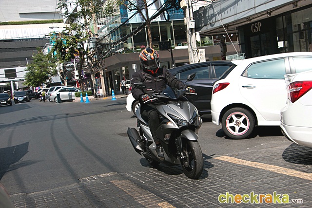ความคล่องตัวในการซอกแซกระหว่างช่องแคบของรถยนต์ก็ง่ายดาย การตอบสนองของคันเร่งฉับไวทำให้เร่งได้ทันใจ จะกลับรถหรือเลี้ยวโค้งปลอดภัย การทรงตัวอยู่ในเกณฑ์ดีเกินคาด ไม่ต้องเกร็งมือบนแฮนด์เพื่อทรงตัวมากนัก