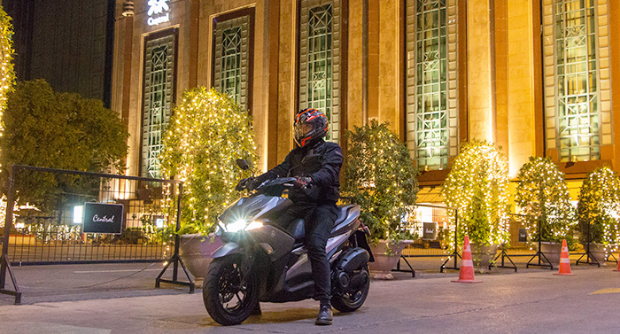 การทดสอบขับ Aerox155 ABS Version เริ่มต้นจากถนนชิดลม - สยาม - พระรามที่4 - สุขุมวิท - ทองหล่อ - เอกมัย สภาพการจราจรหนาแน่น ซึ่งการทดสอบเป็นเส้นทางทั้งนอกและในเมือง รวมถึงการจราจรแทบทุกรูปแบบ ขับจริง! ใช้จริง! ทั้งกลางวันจรดช่วงค่ำ รวมระยะทางประมาณ 68 กิโลเมตร
