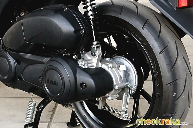 ยามาฮ่า แอร็อกซ์ 155 เอบีเอส เวอร์ชั่น มาพร้อมโช้คอัพหน้าแบบเทเลสโคปิก ด้านหลังยูนิตสวิง ดิสก์เบรกหน้าพร้อม ABS ดรัมเบรกหลัง ล้อแม็กขนาด 14 นิ้ว ทั้งด้านหน้าและหลัง ยางไซส์บิ๊กใหญ่สุดในรถระดับเดียวกันหน้ากว้างขนาด 140 มม.