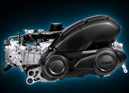 Yamaha Aerox155 ABS Version ใช้เครื่องยนต์ 1 สูบ 4 จังหวะ SOHC 4 วาล์ว พร้อมระบบแปรผัน VVA จ่ายน้ำมันด้วยหัวฉีดอัจฉริยะ อัตราส่วนกำลังอัด 10.5:1 ความจุ 155 ซีซี ระบายความร้อนด้วยน้ำ โดดเด่นด้วยเทคโนโลยีเครื่องยนต์ Blue Core ให้การประจุไอดีอย่างรวดเร็วด้วยการออกแบบคอคอดไอดีช่วยรีดอากาศเข้ากระบอกสูบได้มากขึ้น เสื้อของกระบอกสูบแบบ ไดอะซิล (DiASil) น้ำหนักเบาระบายความร้อนดีกว่ากระบอกสูบแบบธรรมดาถึง 3 เท่า พร้อมระบบฉีดน้ำมันหล่อลื่นใต้ลูกสูบ Oil Jet Piston Cooler เพื่อระบายความร้อนได้ดียิ่งขึ้น