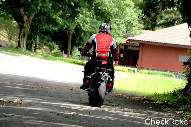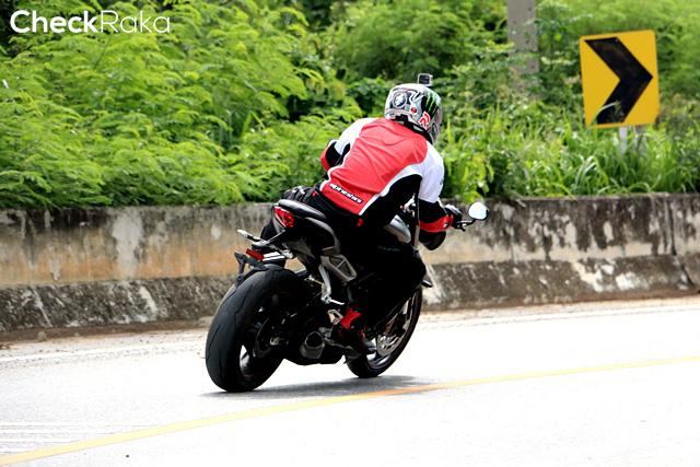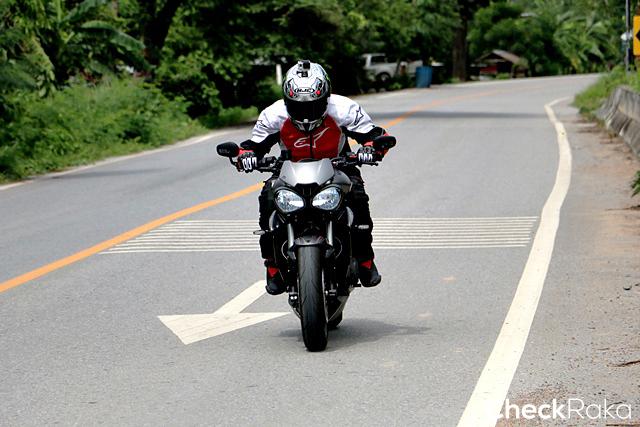 เมื่อเลยช่วงตลาดสี่มุมเมือง ฟิวเจอร์ปาร์ครังสิตไป ทางเริ่มเปิดโล่ง ขี่ได้สบายมากขึ้น ผู้เขียนใช้โหมด road ในการเดินทางไป และใช้ทางคู่ขนานไปตลอด ซึ่งถนนบางช่วงมีพื้นผิวเสียหาย และบางช่วงก็อยู่ในระหวางการปรับปรุง ความเร็วที่ใช้ส่วนใหญ่อยู่ในช่วง 100-130 กม./ชม. อันเป็นความเร็วสำหรับการเดินทางพร้อมผู้ซ้อน และตัวผู้ขี่ก็ไม่ต้องต้านลมมาก ด้วยระยะทางถึงอุทยานฯ กว่า 100 กม. ผู้เขียนแวะพักเติมน้ำมันครั้งเดียว เมื่อถึงที่หมายก็ไม่ได้รู้สึกเมื่อยล้าแต่อย่างใด เครื่องยนต์ 3 สูบ ทำงานได้อย่างน่าพอใจทั้งการระเบิดรอบเร่งแซงรถช้า หรือช่วงคับขัน ตลอดจนการสมรรถนะการทรงตัวที่ดี สมดุลเยี่ยม และเบรกชะลอหยุด ตอบสนองได้อย่างมั่นใจในทุกช่วงความเร็ว ทำให้เพลินจนอยากจะทำระยะให้ไกลกว่านี้ ตรงกันข้ามช่างภาพที่นั่งมาด้วยกลับไม่ค่อยสบายเท่าไหร่เพราะไม่ใช่ตำแหน่งเบาะที่ไว้สำหรับเดินทางไกลนานๆ ทำให้เมื่อยง่าย สุ้มเสียงการทำงานของเครื่องยนต์ผ่านท่อจัดว่าค่อนข้างสุภาพ ทำให้ขาดอรรถรสไปบ้างเวลาลากรอบสูงๆ