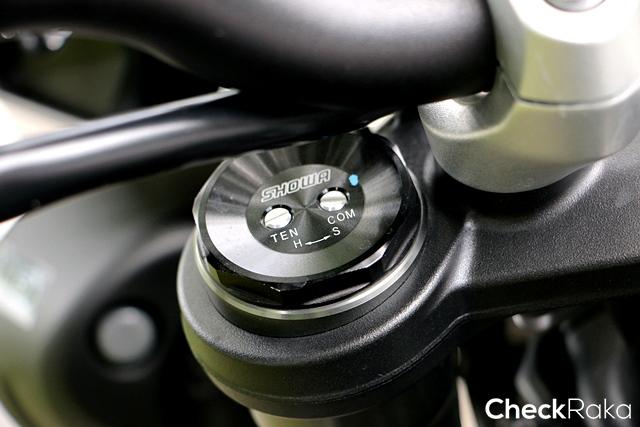 โช้กอัพคู่หน้า Showa ปรับได้เต็มรูปแบบ พรีโหลดและรีบาวด์/คอมเพรส