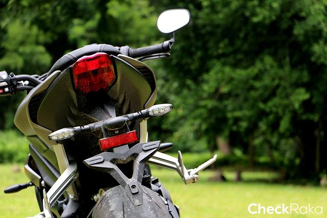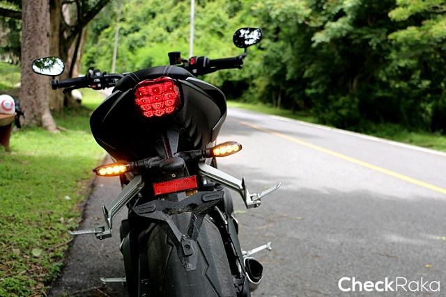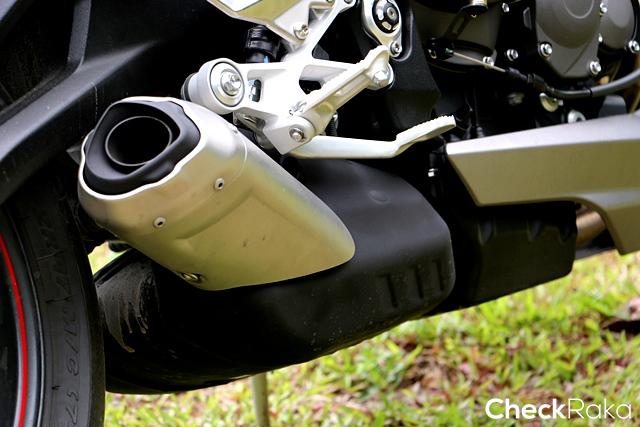 ท่อไอเสียเดินผ่านด้านล่าง ปลายขึ้นมายิงออกหน้าล้อหลังดูสั้นและกลมกลืนไปกับตัวรถ
