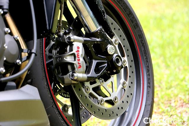นอกจากนี้ ผู้เขียนได้ลองเบรกจากความเร็วสูงสู่จุดหยุดนิ่งแบบไม่ให้ ABS ทำงาน ก็พบว่าระบบเบรก Brembo หน้าแบบ 4 pot หลัง 1 pot ผสานการทำงานได้อย่างยอดเยี่ยม สามารถหน่วงความเร็วลงมาได้อย่างนุ่มนวล และรู้สึกได้ถึงพลังการจับที่พร้อมสยบทุกย่านความเร็ว นับเป็นสปอร์ตไบค์ทรง Naked อีกรุ่นที่ต้องยกให้เป็นดาวเด่นของปี 2017 แม้ว่าผู้เขียนจะไม่มีโอกาสได้ลองขี่ในสนามแข่งจริงที่น่าจะช่วยให้สัมผัสและเข้าถึงสมรรถนะของ 765RS มากกว่านี้ แต่ก็เชื่อว่าพระเอกรุ่นใหม่ล่าสุดจาก ไทรอัมพ์ รุ่นนี้เป็นรถที่พร้อมจะทำให้คุณเร้าใจกับทุกโค้งในสนามแข่งและก็สนุกไปกับทุกการเดินทาง (โดยเฉพาะทางขึ้น-ลงเขา) ได้ทุกโอกาสครับ