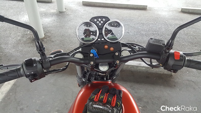 ความสะดวกสบายในเทคโนโลยีอาจไม่มีมากนัก เพราะเป็นรถแนวคลาสสิกที่เน้นความดิบเวลาขับขี่ แต่ในส่วนของท่านั่งขับนั้นก็นับว่าสบายได้ระดับหนึ่ง ด้วยหัวเข่าที่งอไปทางด้านหลังเล็กน้อย แฮนด์บาร์ที่ไม่ยื่นไปด้านหน้ามากเกินไป แต่ในส่วนของก้านคลัตช์อยู่ในระดับที่เอนลงต่ำมากไป จึงทำให้เมื่อยมือเวลาขับขี่ช่วงรถติดๆ และมีความหนักแบบตึงๆ มืออยู่บ้าง แต่เบาะนุ่มนั่งสบายเต็มๆ ทดแทนโช้กที่แข็งไปได้มากทีเดียว