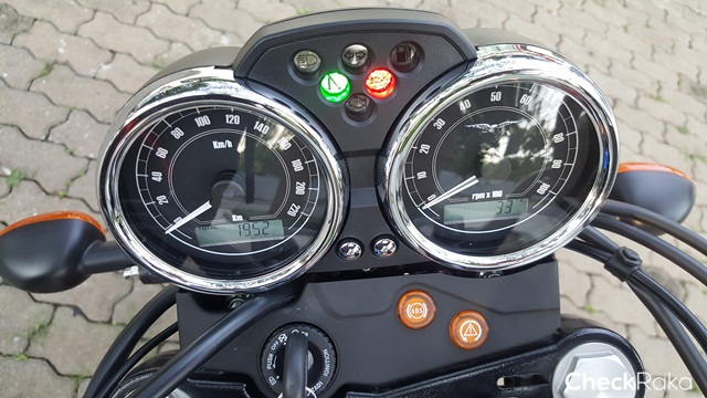 มาตรวัดแบบทรงกลมขอบโครเมียม 2 ชิ้นตรงกลางมีแผงไฟเตือนระบบต่างๆ ทั้งไฟสูง, ไฟเลี้ยว, ไฟตำแหน่งเกียร์ว่าง, ไฟเตือนน้ำมันเครื่อง, ไฟรูปเครื่องยนต์ และไฟเตือนน้ำมันใกล้หมดถังซึ่งรุ่นนี้ไม่มีเข็มบอกระดับน้ำมันมาให้
