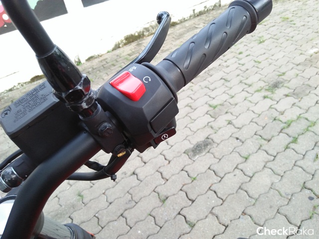 บริเวณแผนสวิตช์กุญแจมีไฟเตือนอีก 2 ดวง แสดงสถานะการทำงานของ ABS และ Traction Control ที่แฮนด์บาร์ฝั่งขวามีปุ่มสตาร์ตและสวิตช์ดับเครื่อง ส่วนทางซ้ายมีสวิตช์ไฟสูง-ต่ำ แตร และไฟเลี้ยวง่ายๆ ไม่ยุ่งยาก และสวิตช์กุญแจก็มีตำแหน่งไม่เยอะเพียงแค่ Lock, Off และ On เท่านั้น