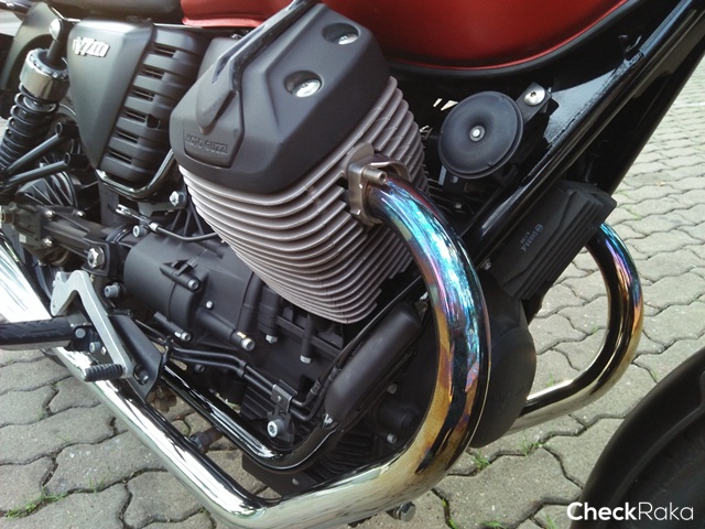Moto Guzzi V7 II Stone เครื่องยนต์ที่มีฝาสูบใกล้กับขาแต่ว่าไม่รู้สึกร้อนจนแสบมากนัก เมื่อจอดติดไฟแดงก็ไม่มีไอความร้อนมาทำให้รู้สึกร้อนจนทนไม่ไหว เรียกว่ารับได้สบายๆ แถมระบบระบายความร้อนออกแบบได้เหมาะกับเมืองร้อน รถติดหนักมากอย่างไทยก็ใช้งานได้ดี ไม่มีปัญหา จะมีบ้างหากต้องติดนานมากๆ พร้อมกับเจอแสงแดดแผดเผาก็เพียงดับเครื่องเท่านั้นเอง