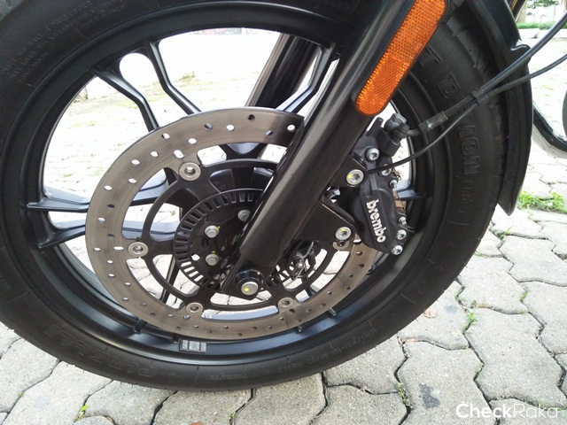 มั่นใจด้วยเบรกจาก Brembo และระบบ ABS ระบบ Traction Control กันล้อหมุนฟรีเมื่อกระแทกคันเร่ง อีกสิ่งที่เพิ่งคิดออกในเรื่องความปลอดภัยคือ ระบบส่งกำลังแบบเพลาจึงหมดปัญหาการพันของชายเสื้อที่ยาวๆ ของผู้ซ้อนหรือสิ่งอื่นๆ ที่จะเข้าไปพันกับระบบโซ่ได้