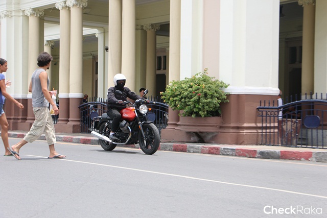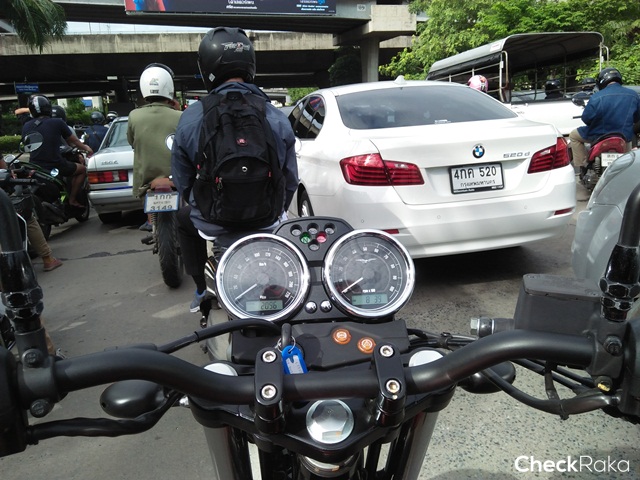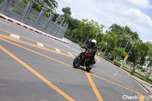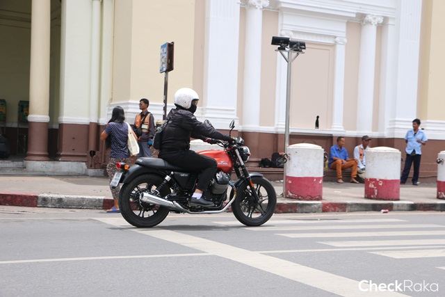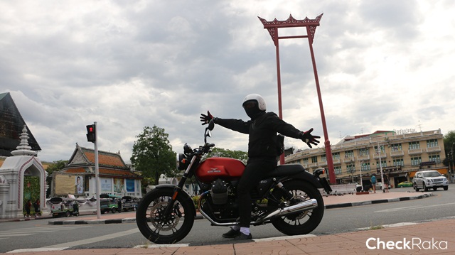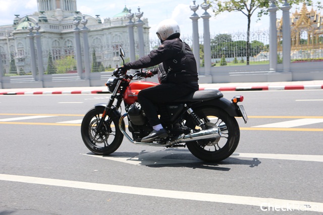 ทีมงานเช็คราคา.คอม ได้ทดสอบสวนกระแสการขับบิ๊กไบค์ด้วยการขับกินลมชมเมืองในเขตชั้นใน เริ่มต้นจากถนนชิดลม สยามสแควร์ ผ่านหน้าสถานีรถไฟหัวลำโพง ถนนหลานหลวง ถนนนางเลิ้ง ถนนพระอาทิตย์ สนามหลวง ท่าพระจันทร์ และไปสิ้นสุดจุดสุดท้ายที่เป็นแลนด์มาร์คสุดสำคัญอย่างเสาชิงช้า โดยตลอดเส้นทางนับว่ามีปริมาณรถหนาแน่นมากถึงมากที่สุด สภาพอากาศร้อนอบอ้าว เพื่อทดลองขับขี่ในสภาพการจราจรแออัดสุดๆ ในตัวเมืองว่า เจ้า Moto Guzzi V7 II Stone คันนี้จะสามารถพาไปได้อย่างสะดวกสบายเพียงใด