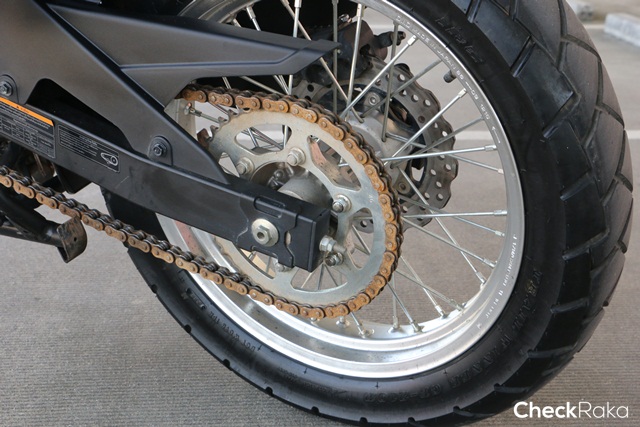 นอกจากนี้ยังให้ล้อแบบซี่ลวดเพื่อความนุ่มนวลในการลุยได้เป็นอย่างดี พร้อมดิสก์เบรกหน้า-หลังและระบบ ABS