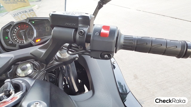 แฮนด์ฝั่งซ้ายมีไฟสูง-ต่ำ, ไฟเลี้ยว สวิตช์ไฟฉุกเฉิน และมีสวิตช์ PASS เปิดไฟสูงแบบทางลัด ส่วนทางขวามีเพียงสวิตช์สตาร์ตและดับเครื่องยนต์เท่านั้น ไม่มีอะไรซับซ้อน