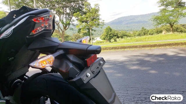 ไฟท้าย LED หากมองดีจะคล้ายๆ ตัว "Z" ในแบบรถตระกูล "Z" นั่นเอง ด้านข้างไม่ใหญ่โตเมื่อเทียบกับขนาดรถ 650 ซีซี ถังน้ำมันขนาดใหญ่จุได้ 15 ลิตร เบาะนั่งอยู่ในระดับต่ำ แบ่ง 2 ชั้นแยกคนซ้อน ท่อไอเสียอยู่ใต้ท้อง