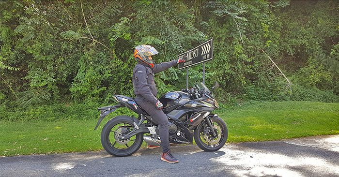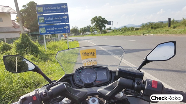 เส้นทางในทริปนี้ กรุงเทพฯ - นครนายก เดินทางพร้อมเหล่านักบิดอีก 6 คัน โดยเริ่มขับขี่จากในเมืองสภาพจราจราหนาแน่น สู่สภาพโล่งและความร้อนระอุของแสงแดดที่อุณหภูมิราวๆ 38 องศาเช่นเคย รวมระยะทางประมาณ 300 กว่ากม. ด้วยรถมอเตอร์ไซค์ Kawasaki Ninja 650 R จากโชว์รูม "โมโตโฮลิค สาขาราชพฤกษ์ วงเวียนพระราม 5" ที่เอื้อเฟื้อให้นำรถมาทดสอบในครั้งนี้ (ดูรายละเอียดได้ที่ www.kawasakimotoaholic.com)