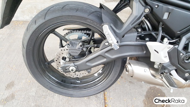 ไฟท้าย LED หากมองดีจะคล้ายๆ ตัว "Z" ในแบบรถตระกูล "Z" นั่นเอง ด้านข้างไม่ใหญ่โตเมื่อเทียบกับขนาดรถ 650 ซีซี ถังน้ำมันขนาดใหญ่จุได้ 15 ลิตร เบาะนั่งอยู่ในระดับต่ำ แบ่ง 2 ชั้นแยกคนซ้อน ท่อไอเสียอยู่ใต้ท้อง