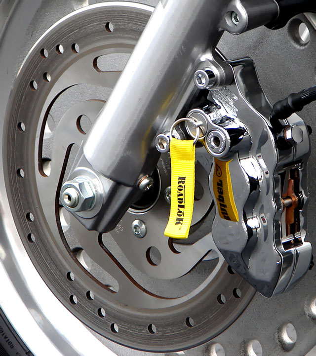 ชุดคาลิปเปอร์ล็อคลูกสูบเบรก!!! ชุดนี้อลังการมากๆ เพราะเป็นการติดตั้งชุดคาลิปเปอร์เบรกอันใหม่เข้าไปแทนที่ชุดเบรกเดิม ลงทุนสูงแต่ได้ผลดีเยี่ยม เพราะคงยากมากในการปลดล็อค และเป็นอุปกรณ์ที่ไม่ค่อยเห็นทั่วไป ขโมยอาจยืนงงสักครู่และเดินจากไปแบบ "มึนๆ"