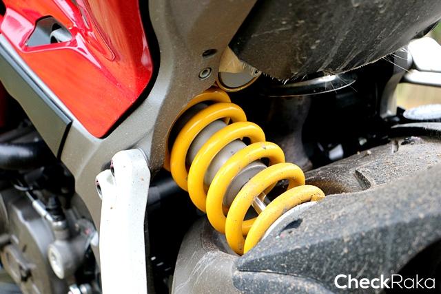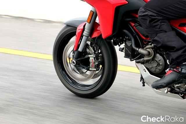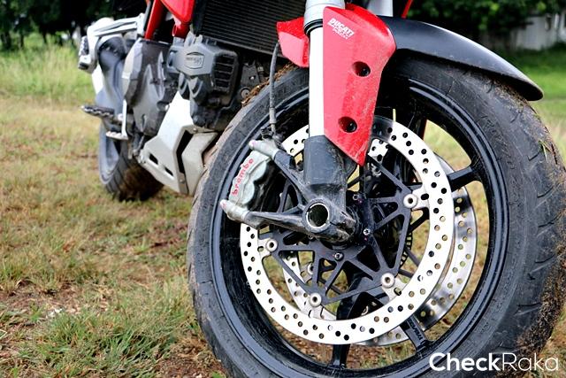 ช่วงล่างด้านหน้า Sachs ขนาด 48 มม. ด้านหลังเป็น Sachs ทั้งหน้า-หลังปรับระดับได้ คุมการยุบ-คืนด้วยอิเล็กทรอนิกส์ความยาวโช้กอัพหน้า-หลังเท่ากันที่ 170 มม. พร้อมเทคโนโลยี Skyhook Suspension (DSS) ที่ผสานการทำงานของโช้กอัพทั้งหน้า-หลัง ในจังหวะยุบและคืนตัวด้วยอิเล็กทรอนิกส์ ดังนั้นไม่ว่าเส้นทางเป็นแบบไหนระบบนี้ก็จะปรับให้ตัวรถอยู่ในสมดุลที่ดีที่สุด ด้านระบบเบรกหน้าคาลิปเปอร์เบรมโบ โมโนบล็อค Ev0 M50 4 Pot พร้อมจานคู่ขนาด 330 มม. หลังเป็นคาลิปเปอร์ 2 Pot พร้อมจานขนาด 265 มม. โดยมี ABS แบบเลี้ยวได้เป็นมาตรฐาน ยางหน้า-หลังใช้ของ Pirelli Scopion Trail II ต่างขนาดหน้าเป็น 120/70 R17 ส่วนหลังเป็น 190/55 R17 ด้านน้ำหนักตัวรถแบบไร้ของเหลวรุ่นนี้อยู่ที่ 212 กก.