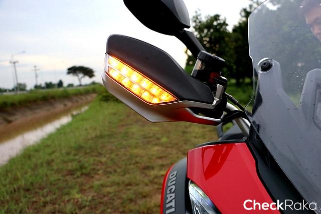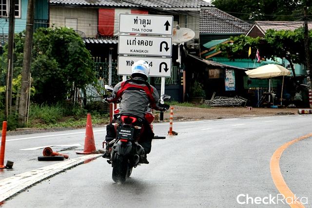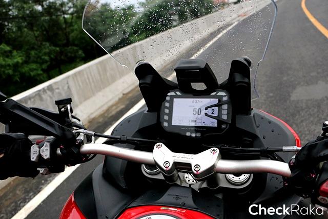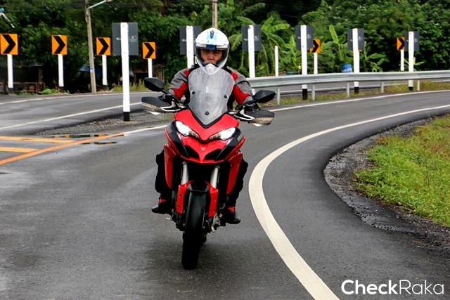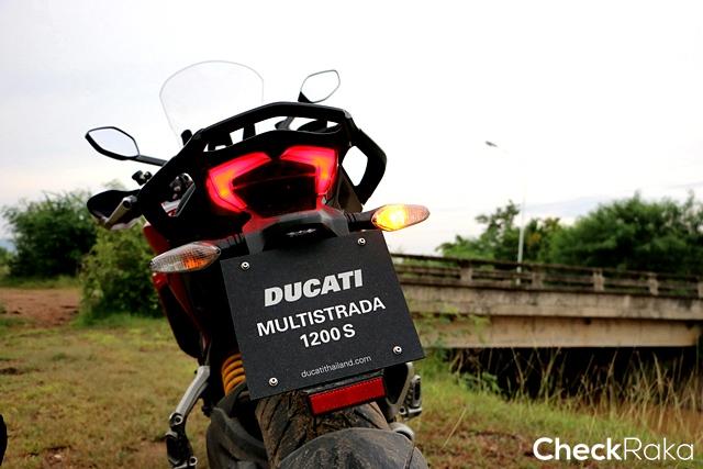 ไม่นานผู้เขียนก็เจอกับพายุฝนเทกระหน่ำจนต้องหาที่หลบเป็นเวลาชั่วโมงกว่า ออกมาขี่ก็อีกเป็นทางเปียกก็นับว่างานนี้ได้เจอหลากหลายรูปแบบ หลังจากขี่วนหาสถานที่บันทึกภาพจนเสร็จเรียบร้อย ก็แวะพักเติมพลังมื้อเย็นก่อนเดินทางกลับกรุงเทพฯ เวลาออกเดินทางประมาณทุ่มพระอาทิตย์ลับฟ้าไปเรียบร้อย ทำให้เป็นการขี่เดินทางกลางคืนหน้าจอแสดงผลปรับโหมดตามสภาพแสงเพื่อความชัดเจนในการมอง แม้เหนื่อยล้าบ้างจากภารกิจตลอดวัน แต่การขี่กลับบนถนนหลวงในยามค่ำคืน เจ้า 1200S กลับให้ความมั่นใจอย่างเหลือเชื่อ ด้วยระบบไฟส่องสว่าง LED ทำให้เห็นเส้นทางข้างหน้าได้ชัดเจน และพลังจากเครื่องยนต์ Testastretta DVT (Desmodromic Variable Timing) ตอบสนองทุกการเร่งแซง ส่วนระบบเบรกเบรมโบ ช่วยให้การเบรกชะลอ-หยุด ทำได้อย่างมั่นใจและง่ายต่อการควบคุม สรุปแล้ว Ducati Multistrada 1200S เป็นแอดเวนเจอร์ไบค์ที่สมบูรณ์แบบรุ่นหนึ่ง ตอบสนองการเดินทางได้อย่างดีในทุกๆ ด้าน นับเป็นหนึ่งในมอเตอร์ไซค์ที่ประทับใจในการทดสอบมากรุ่นหนึ่งของปีนี้ครับ