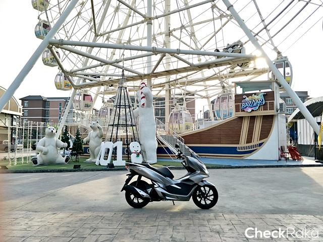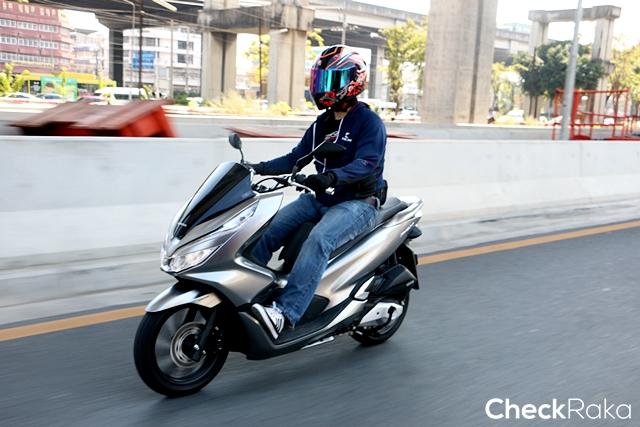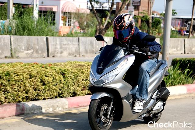 นับแต่เริ่มออกเดินทาง รู้สึกได้เลยว่าใช้งานได้สะดวก แต่สภาพผิวถนนค่อนข้างแย่ เปิดโอกาสให้เราได้ทดสอบระบบช่วงล่างที่ด้านหน้าเป็นแบบเทเลสโกปิค ด้านหลังแบบยูนิตสวิง และระหว่างทางช่วงแรกการจราจรค่อนข้างโล่งจึงทำความเร็วได้ต่อเนื่อง เมื่อถึงจุดหมายสถานตากอากาศบางปู ก็เลือกหาทำเลในการจอดถ่ายรถสวยๆ พร้อมชื่นชมกับบรรยากาศธรรมชาติ นกนางนวล ป่าชายเลน อันเป็นเสน่ห์ของที่นี่ จนเวลาล่วงเลยเข้าช่วงเย็นก็ได้เวลาเดินทางกลับ ซึ่งเป็นอีกช่วงสำคัญเพราะต้องขี่กลับมากองบัญชาการเช็คราคา.คอม ที่ชิดลม โดยดูกูเกิ้ลแมพแล้วเลือกใช้เส้นทางจากถนนสุขุมวิทมุ่งหน้าแยกไปทางถนนศรีนครินทร์ ตรงยาวไปตัดซ้ายเข้าซอยพัฒนาการ แล้วมุ่งไปออกถนนเพชรบุรี ขี่ไปถึงแยกเข้านานาเหนือออกถนนสุขุมวิทตรงสู่ชิดลม นับเป็นเส้นทางและช่วงเวลาที่พิสูจน์ถึงสมรรถนะการใช้งานในชีวิตประจำวันของ All New Honda PCX 150 อย่างแท้จริง