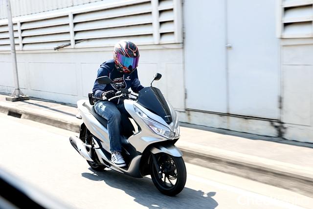 การขี่ทดสอบ All New Honda PCX 150 ผู้เขียนมีโอกาสได้ใช้งานขี่จริง 3 วัน ซึ่งมีทั้งใน-นอกเมือง ทั้งชั่วโมงเร่งด่วนและทั่วไป โดยเริ่มวันแรกผู้เขียนเดินทางไปรับรถกันที่บริษัท เอ.พี. ฮอนด้า จำกัด สมุทรปราการ นับเป็นรถใหม่มากจริงๆ เท่าที่เคยทดสอบขี่กันมา เพราะนำออกจากโรงงานมารอกันเลย พลาสติกยังถูกหุ้มไว้ เมื่อรับมาแล้วจึงต้องขี่ไปเติมน้ำมันกันก่อนเป็นลำดับแรก โดยผู้เขียนได้เลือกเติมแก๊สโซฮอลล์ 95 - E10 จริงๆ แล้ว All New Honda PCX 150 สามารถรองรับน้ำมันได้ถึง E20 จากนั้นจึงวางเส้นทางขี่ออกไปยังสถานตากอากาศบางปู เพื่อลองวิ่งเส้นทางชานเมือง