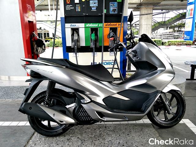 การขี่ทดสอบ All New Honda PCX 150 ผู้เขียนมีโอกาสได้ใช้งานขี่จริง 3 วัน ซึ่งมีทั้งใน-นอกเมือง ทั้งชั่วโมงเร่งด่วนและทั่วไป โดยเริ่มวันแรกผู้เขียนเดินทางไปรับรถกันที่บริษัท เอ.พี. ฮอนด้า จำกัด สมุทรปราการ นับเป็นรถใหม่มากจริงๆ เท่าที่เคยทดสอบขี่กันมา เพราะนำออกจากโรงงานมารอกันเลย พลาสติกยังถูกหุ้มไว้ เมื่อรับมาแล้วจึงต้องขี่ไปเติมน้ำมันกันก่อนเป็นลำดับแรก โดยผู้เขียนได้เลือกเติมแก๊สโซฮอลล์ 95 - E10 จริงๆ แล้ว All New Honda PCX 150 สามารถรองรับน้ำมันได้ถึง E20 จากนั้นจึงวางเส้นทางขี่ออกไปยังสถานตากอากาศบางปู เพื่อลองวิ่งเส้นทางชานเมือง