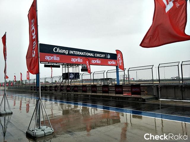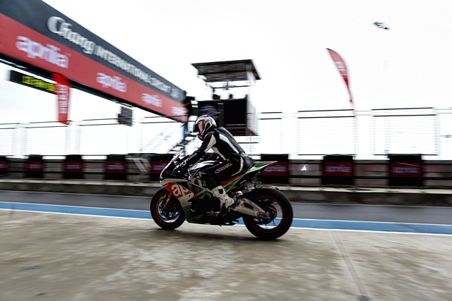 คณะสื่อมวลชนเดินทางไปสนามตั้งแต่วันศุกร์ที่ 6 เพื่อเตรียมพร้อมทดสอบขี่ อาพรีเลีย นิว เอสอาร์วี 4 (Aprilia RSV4) ในช่วงเช้าวันเสาร์ที่ 7 ซึ่งทางผู้จัดได้เตรียมการทดสอบไว้ทั้งวัน และเตรียมรถให้ขี่ทั้งหมด 3 คัน แบ่งเป็น RSV4 RF คัน และ RR 1 คัน ทำให้ต้องแบ่งการขี่ออกเป็นกลุ่มได้ทั้งหมด 8 กลุ่ม โดยมีสมาชิกอาร์เอสวี คลับ มาร่วมขี่ด้วย และได้นำรถอาร์เอสวีของตนมาเอง อย่างไรก็ตามฝนที่เทกระหน่ำอย่างหนักในช่วงกลางคืนจนเช้าก็ยังตกอยู่ทำให้สนามหลายจุดเจิ่งนองไปด้วยน้ำและผิวแทร็กเปียกหมด รถกลุ่มลูกค้าที่เตรียมมาเป็นยางสลิคเกือบทั้งหมดทำให้ไม่สามารถนำลงไปขี่ในสนามได้ ส่วนรถทดสอบของทางอาพรีเลียเองก็ใช้ยางสปอร์ตของพีเรลลี่ ซึ่งไว้ใช้กับถนนแห้งมากกว่า งานนี้ทำให้ทางผู้จัดงานตัดสินใจเปลี่ยนยางฝนที่มีดอกไว้รีดน้ำแทนทั้ง 3 คัน ช่วงการทดสอบจึงล่าช้าออกไปบ้าง