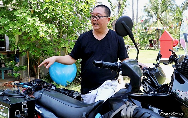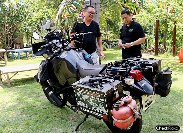รถคันที่ใช้นี้ซื้อต่อมาจากคนรู้จักเพื่อเอามาขี่ในครั้งนี้โดยเฉพาะ เริ่มจากการปรับปรุงระบบช่วงล่างด้วยการเปลี่ยนสปริงให้มีค่าความแข็งที่มากขึ้น รองรับสัมภาระที่ต้องแบกไปตลอดการเดินทาง ติดตั้งอุปกรณ์ต่างๆ เช่น กล่องใส่ของ ชุดไฟส่องสว่าง ชุดเสียบชาร์จไฟ ชิลด์หน้าปรับขนาดใหญ่ขึ้น ยกตุ๊กตาแฮนด์ให้สูงขึ้น และสวิตช์ระบบอุ่นมือ เป็นต้น