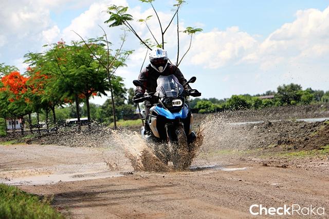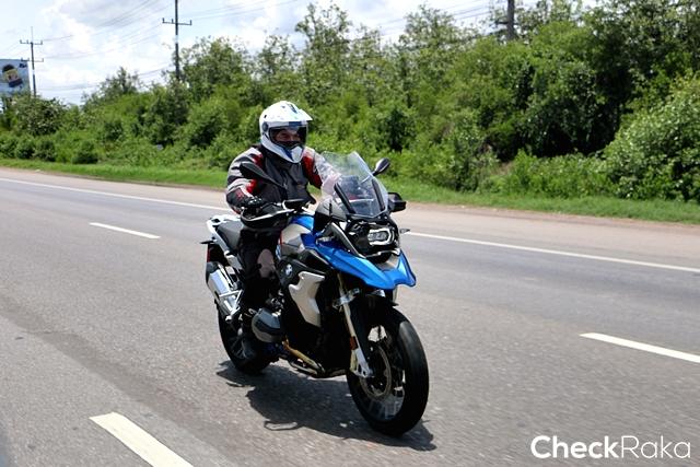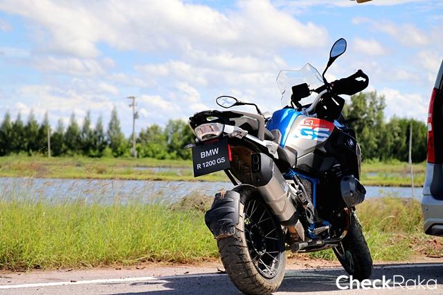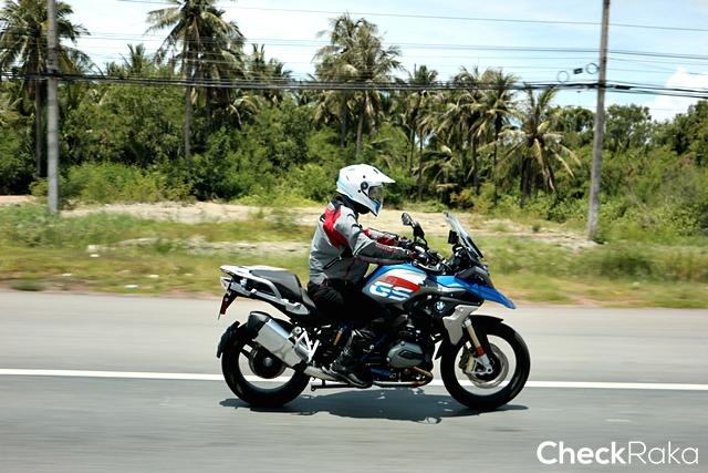 ในส่วนของการขี่ทางไกล ผู้เขียนเริ่มเดินทางจากตึกอัลม่าลิงค์ ชิดลม ขี่ออกเส้นพระราม 2 แวะบางขุนเทียน ไปจบที่คลองโคลน ซึ่งในช่วงแรกต้องขี่ฝ่าการจราจรหนาแน่นในเมือง แต่เมื่อถึงถนนศรีนครินทร์ก็เริ่มเบาบางทำความเร็วได้มากขึ้น การขี่บนถนนดำตัวรถให้การตอบสนองที่ยอดเยี่ยม มุมมองด้านหน้าและด้านข้างทำให้การเปลี่ยนเลนทำได้อย่างมั่นใจและฉับไว ระบบเบรกดิสก์คู่หน้า 4 pot พร้อมจานขนาด 305 มม. ผสานกับด้านหลังดิสก์เบรกเดี่ยวขนาด 276 มม. ให้พลังการชะลอ-หยุดที่ยอดเยี่ยม วางใจได้ในทุกย่านความเร็ว เมื่อเข้าสู่ช่วงทางตรงพระราม 2 ก็ขยับความเร็วเดินทางขึ้นมาเป็น 130-140 กม./ชม. จังหวะการเร่งแซงรถช้า รวมทั้งรถบรรทุกพ่วงยาวทำได้อย่างมั่นใจมาก ด้วยพลังจากเครื่องยนต์บอกเซอร์ 125 แรงม้า ให้อัตราเร่งทันใจมาก เสียงท่อสแตนดาร์ดตอบสนองจังหวะการเร่งด้วยเสียงที่เร้าใจได้น่าฟัง เมื่อถึงคลองโคลนผู้เขียนมีโอกาสใช้เส้นทางออฟโรดบ้าง R1200GS ตอบสนองได้อย่างนุ่มนวลควบคุมง่าย พร้อมขี่ในโหมด enduro เสียดายยางที่ใช้ไม่เหมาะกับทางออฟโรดเท่าไหร่ จึงไม่ได้ลุยตามที่ตั้งใจมากนัก สรุปแล้วนี่คือ บิ๊กไบค์แอดเวนเจอร์ ที่ชอบสุดนับตั้งแต่ได้ลองมา จริงๆ R1200GS นับเป็นบิ๊กไบค์ที่ใช้งานได้ดีรอบด้านด้วยซ้ำไม่ได้จำกัดเฉพาะการขี่ท่องเที่ยวหรือบุกตะลุยอย่างเดียว ด้วยราคา 975,000 บาท เมื่อเทียบกับคู่แข่งคลาสเดียวกันที่ใช้เครื่องยนต์มากกว่า 1 ลิตร ที่มีราคาแพงกว่ายิ่งทำให้ R1200GS กลายเป็นตัวเลือกสุดท้ายที่ต้องจบกับสายนี้
